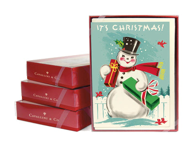 Cavallini - 10 x Glitter Greetings Christmas Cards/Notes - It's Christmas/Snowman