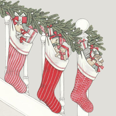 Christmas Stockings - Christmas Card Box Set - 8 Luxury Cards & Envelopes - Sally Swannell