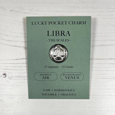 Libra The Scales (23 Sept - 23 Oct) - Zodiac Lucky Pocket Charm - Pewter Token - Compton & Clarke