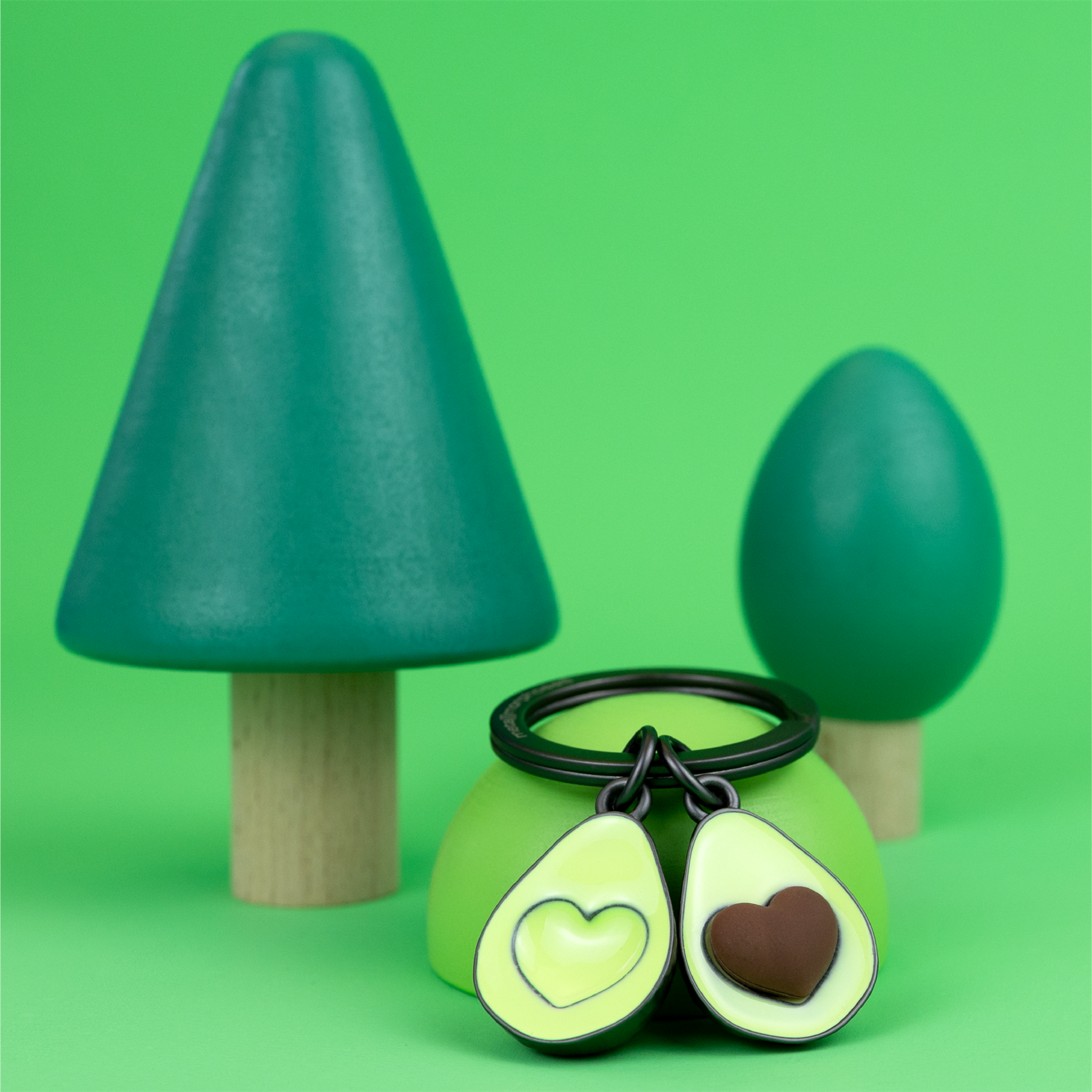 Green Avocado Halves With Heart Seed Keyring - Metalmorphose