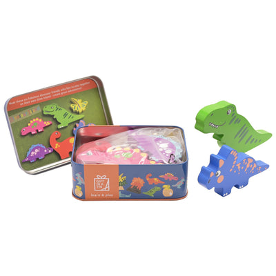 Prehistoric fun for children! These chunky wooden Dino's are great fun to play with whether on their own island or around the house.  And after playtime, they all pack back in the tin.