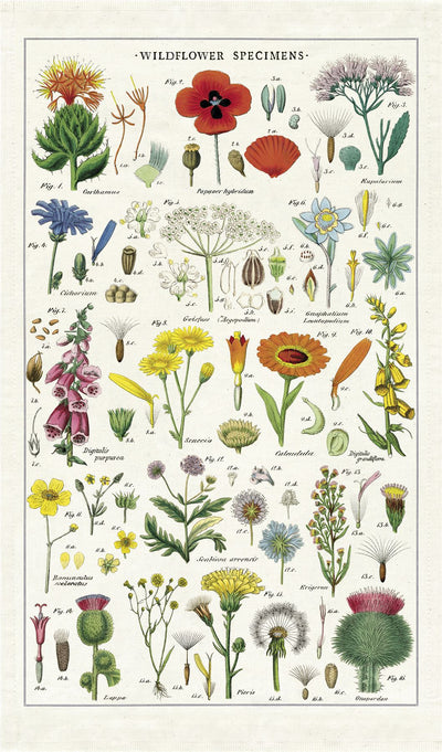 Cavallini - 100% Natural Cotton Vintage Tea Towel - 80 x 47cms - Wildflowers