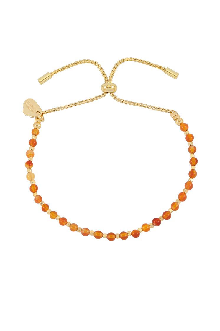 This classic Amelia bracelet is dotted with carnelian gemstones and gold plated beads with a slider fastening, making it suitable for any wrist size. Carneilian was previously used in the practice of alchemy and is believed to have many benefits. It is treasured for its positive effects on courage and confidence.