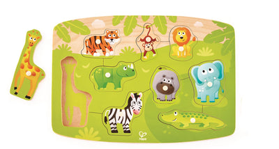 Hape - Jungle/Zoo Animals - Peg Jigsaw Puzzle - 9 Pieces/24 months