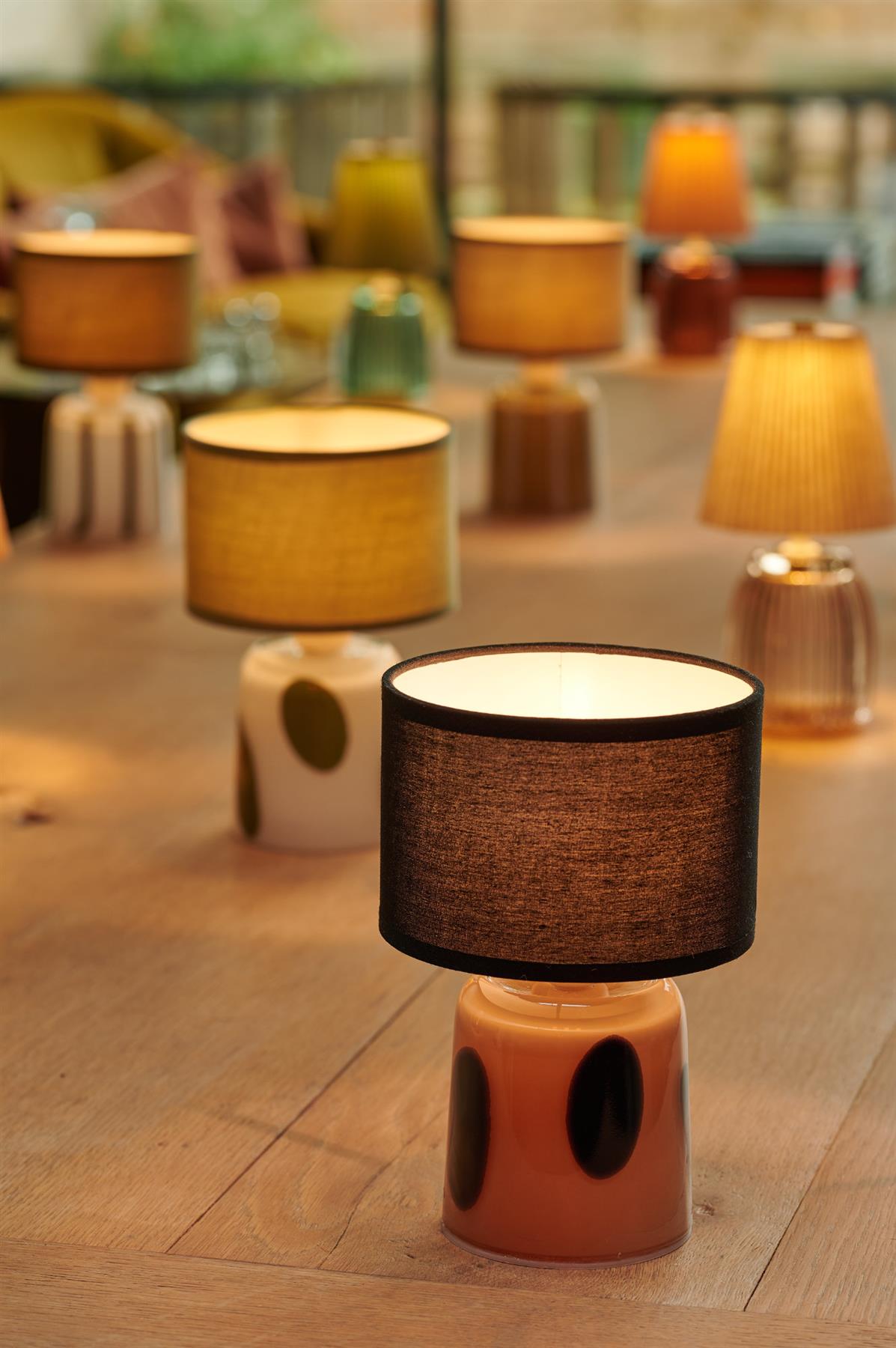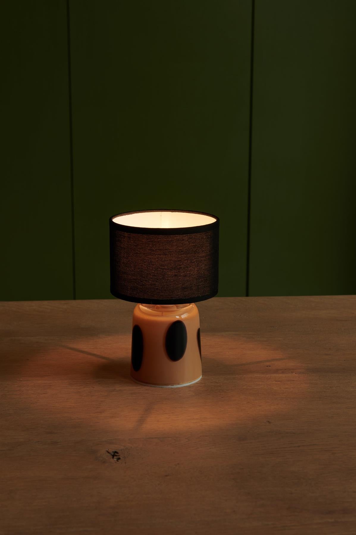 Pixie - Black Polka Dots - Rechargeable Glass Bottomed Table Lamp - Sold Individually