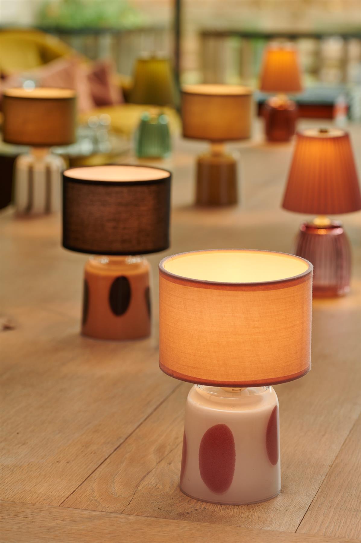 Pixie - Pink Polka Dots - Rechargeable Glass Bottomed Table Lamp - Sold Individually