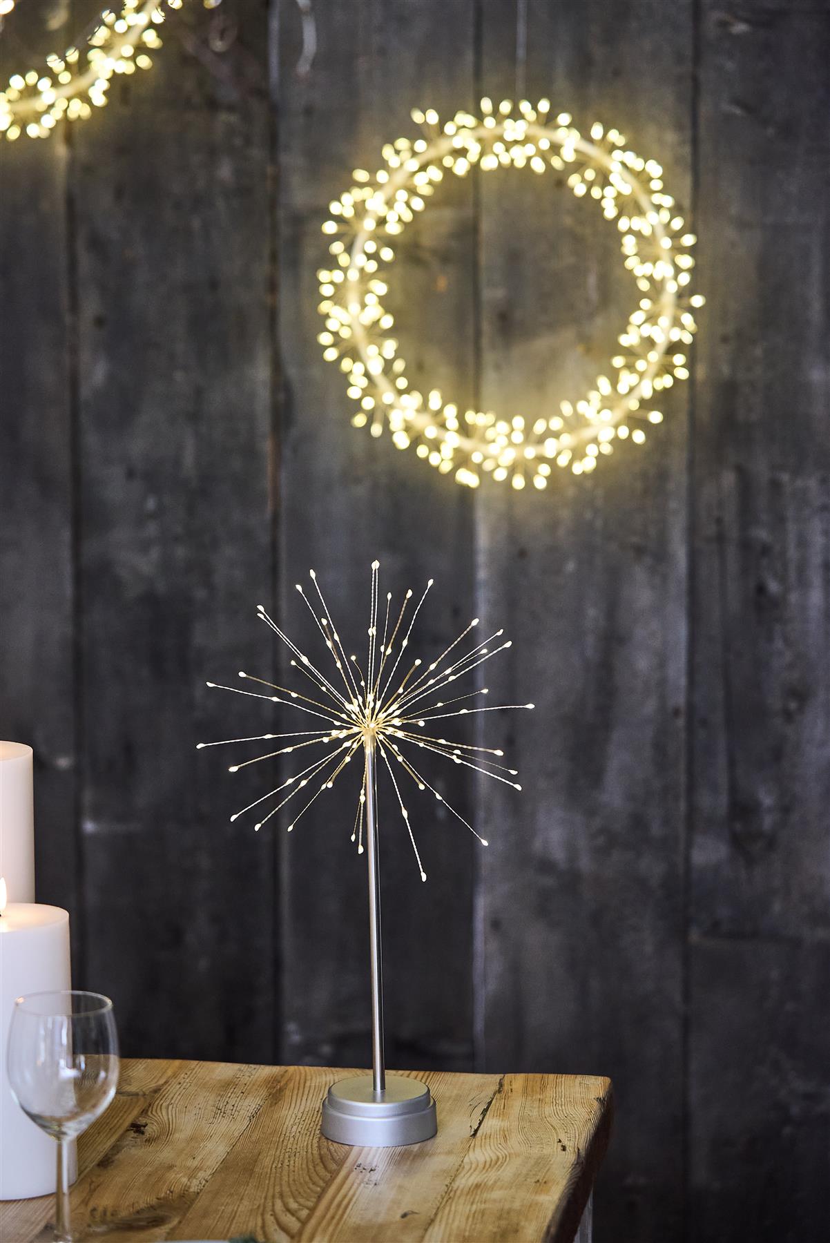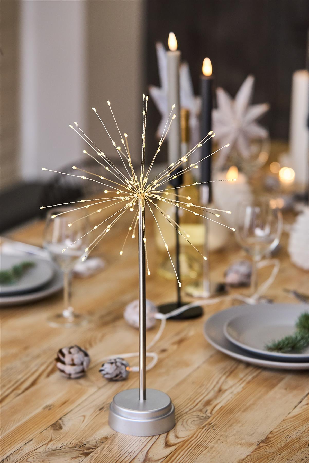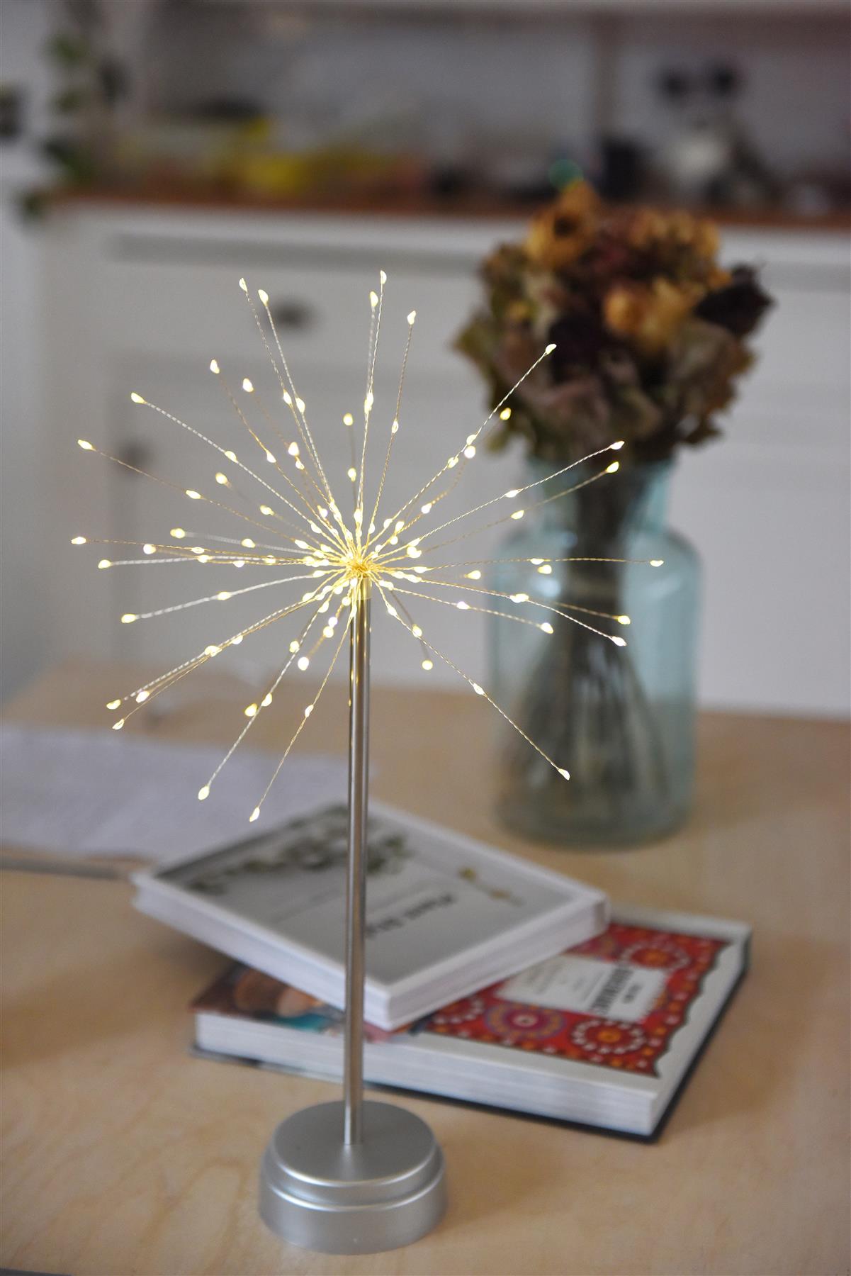 Silver Starburst Table Top Light - 27cm/120 LED Indoor Light With Built In Timer - Battery Powered