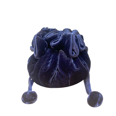 Lua - Round Velvet Draw-Pull Jewellery Pouch - Navy Blue - 12x9.5cms