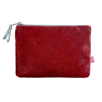 Lua - Velvet Coin Purse - 11 x 16cms - Dark Red/Turquoise Blue Zip