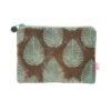 Lua - Velvet Coin Purse - Embroidered Leaf - 11 x 16cms - Mink Brown/Light Blue Leaves