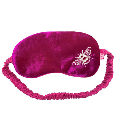 Lua - Velvet Eye/Sleep Mask With Embroidered Bee 9.5 x 19cms - Dark Fuchsia Pink