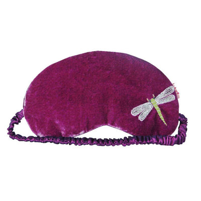 Lua - Velvet Eye/Sleep Mask With Embroidered Dragonfly 9.5 x 19cms - Orchid Pink