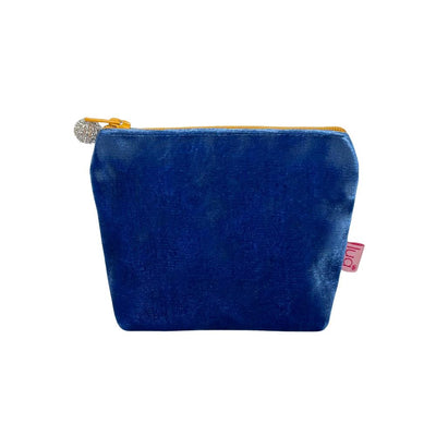 Lua - Velvet Mini Coin Purse 9 x 11cms - Cobalt Blue/Orange Zip