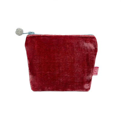 Lua - Velvet Mini Coin Purse 9 x 11cms - Dark Red/Turquoise Blue Zip