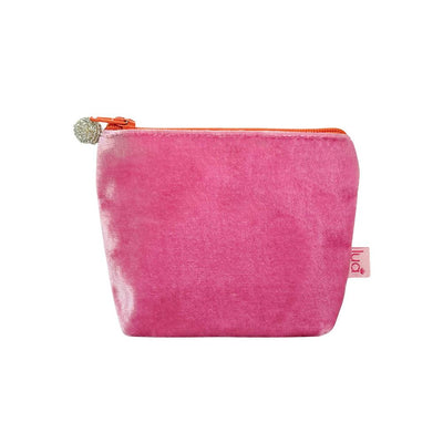 Lua - Velvet Mini Coin Purse  9 x 11cms - Flamingo Pink/Orange Zip