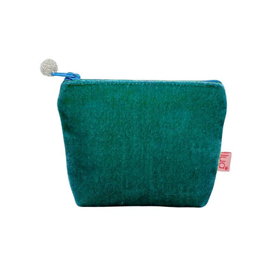 Lua - Velvet Mini Coin Purse 9 x 11cms - Marine Green/Turquoise Blue Zip