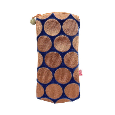 Lua - Velvet Spectacle/Glasses Case - Embroidered Spots 9.5 x 19cms - Denim Blue/Orange Dots