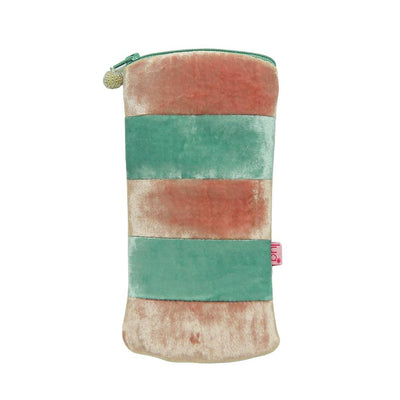 Lua - Velvet Striped Patchwork Spectacle/Glasses Case 9.5 x 19cms - Peach/Mint Green
