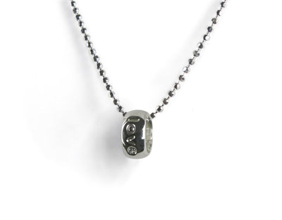 A sterling silver circle, containing the word LOVE hanging from a 45 cm silver chain. She can wear the word hidden, or show it off to the world.