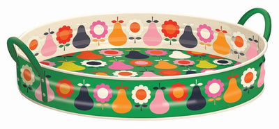 Kate Rhees - Large Deep Round Tin Tray With Handles - Pears & Flowers