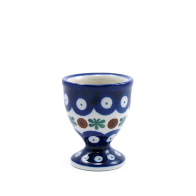 Egg Cup - Flower Tendril/Blue With Red & White Spots - 0106-0070X - Polish Pottery
