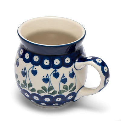 Extra Large Round Mug - Blue Dots With Flower Buds - 500ml - 0073-0377OX - Polish Pottery