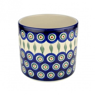 Utensils Jar/Plant Pot - Green, Red & White Spots - Peacock - 12 x 13cms - 0361-0054X - Polish Pottery