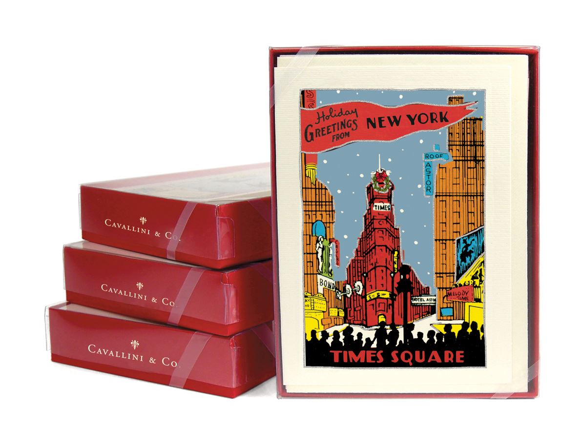Cavallini - 10 x Glitter Greetings Christmas Cards/Notes - New York City Times Square