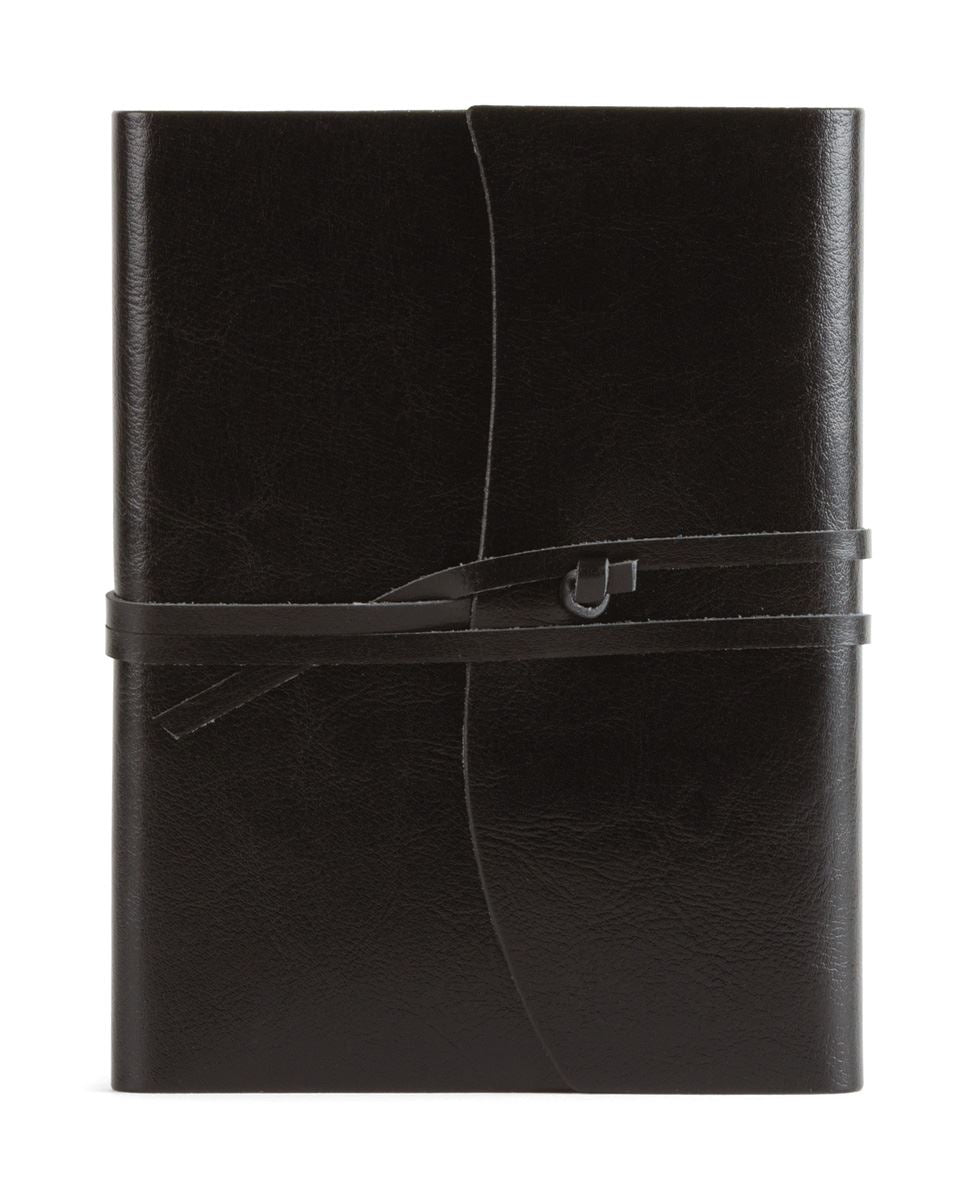 A handbound luxury leather lined paper journal with a flap & tie closure.