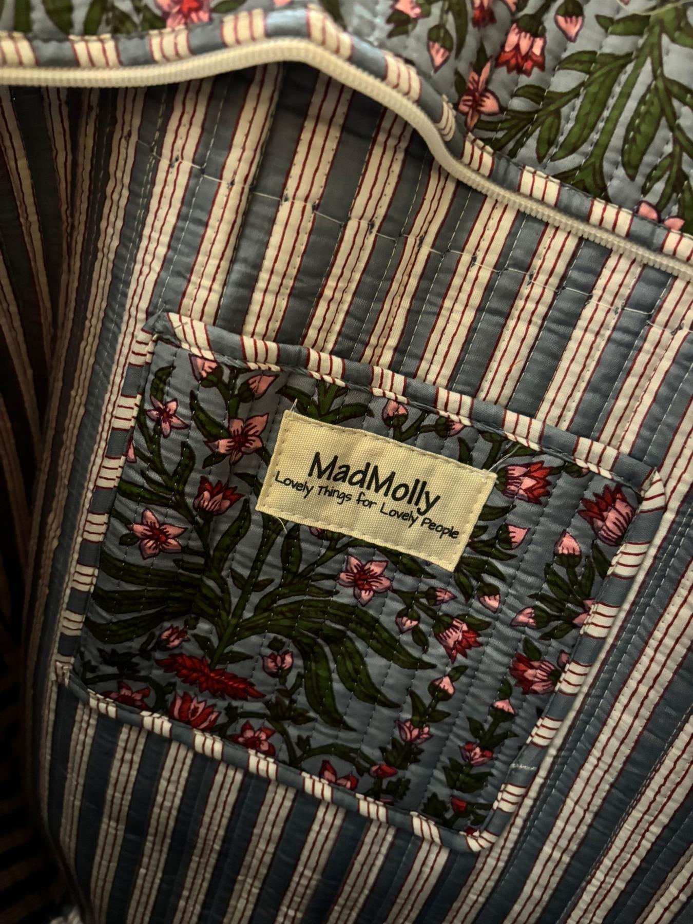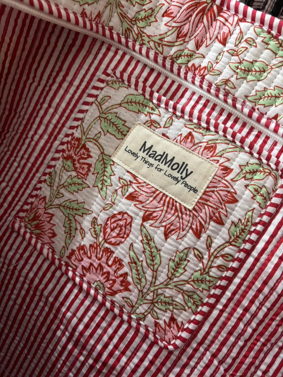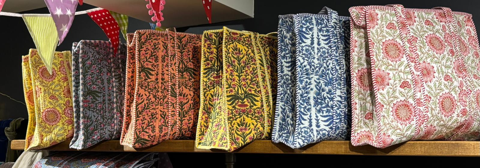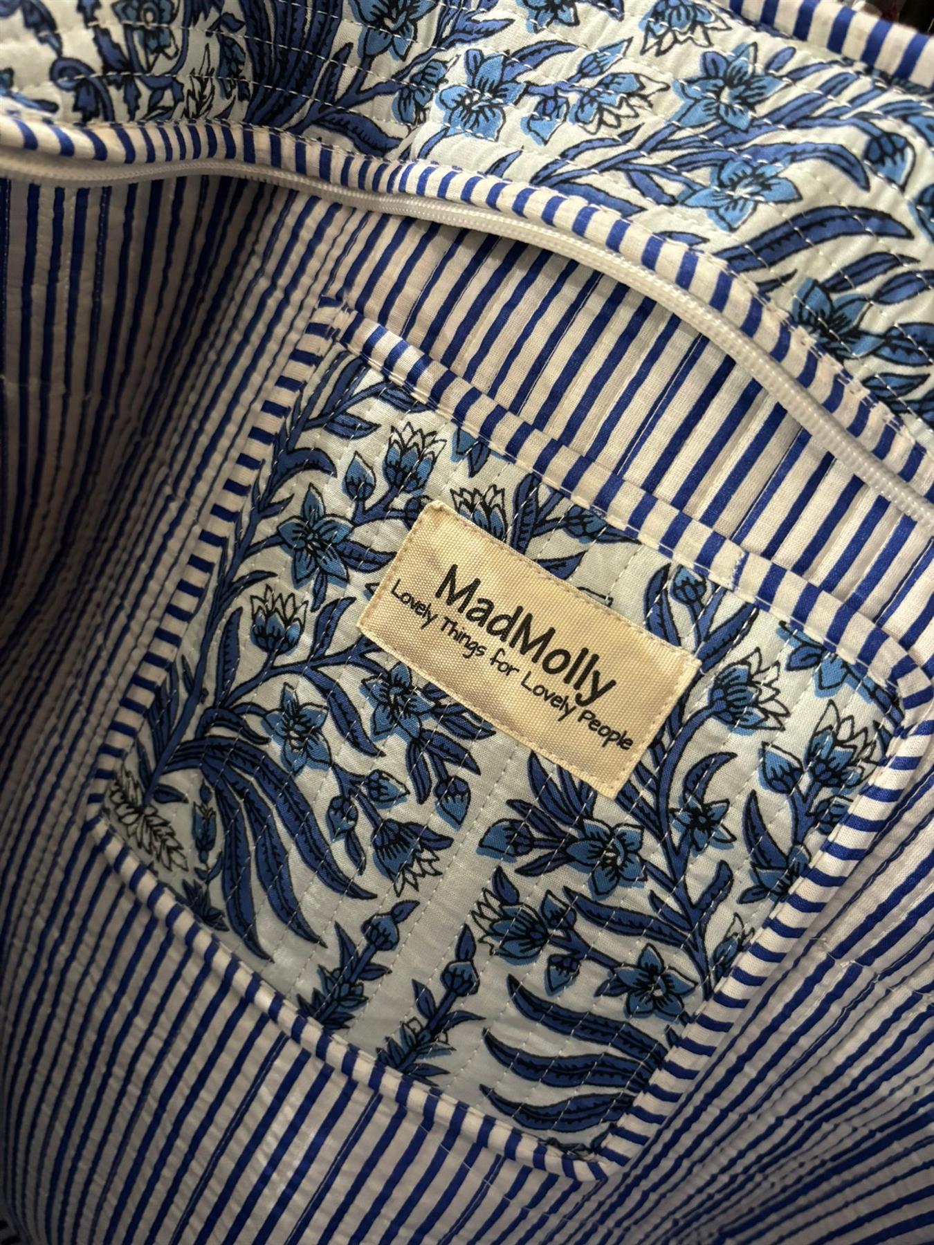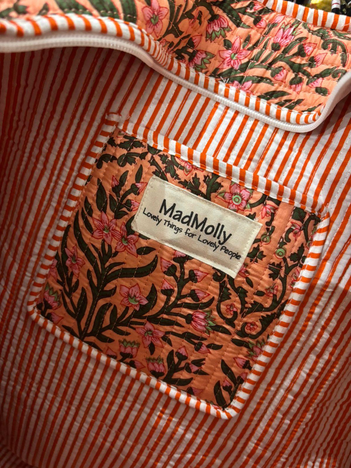 Beautiful MadMolly hand-block printed shoulder bags are made for us in Jaipur, India.