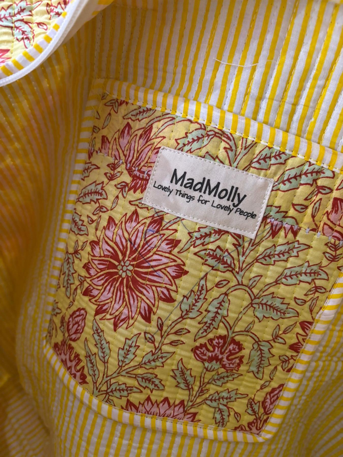 • Lined on the inside with contrasting fabric and a pocket