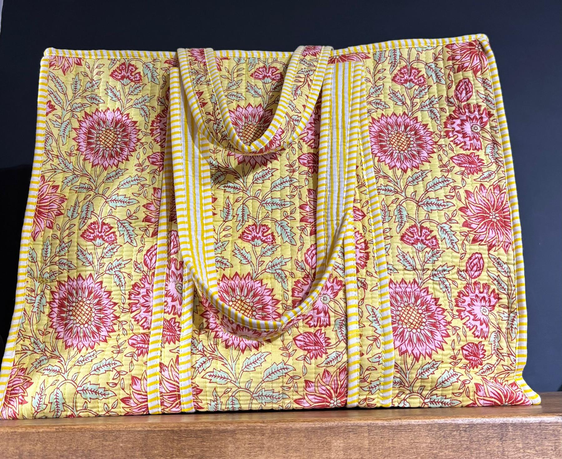 Our shoulder bags are versatile & stylish with a zip! Lightweight, large and roomy, with an internal pocket and comfortable shoulder straps. This spacious, quilted cotton bag can be machine washed so is both beautiful and practical.