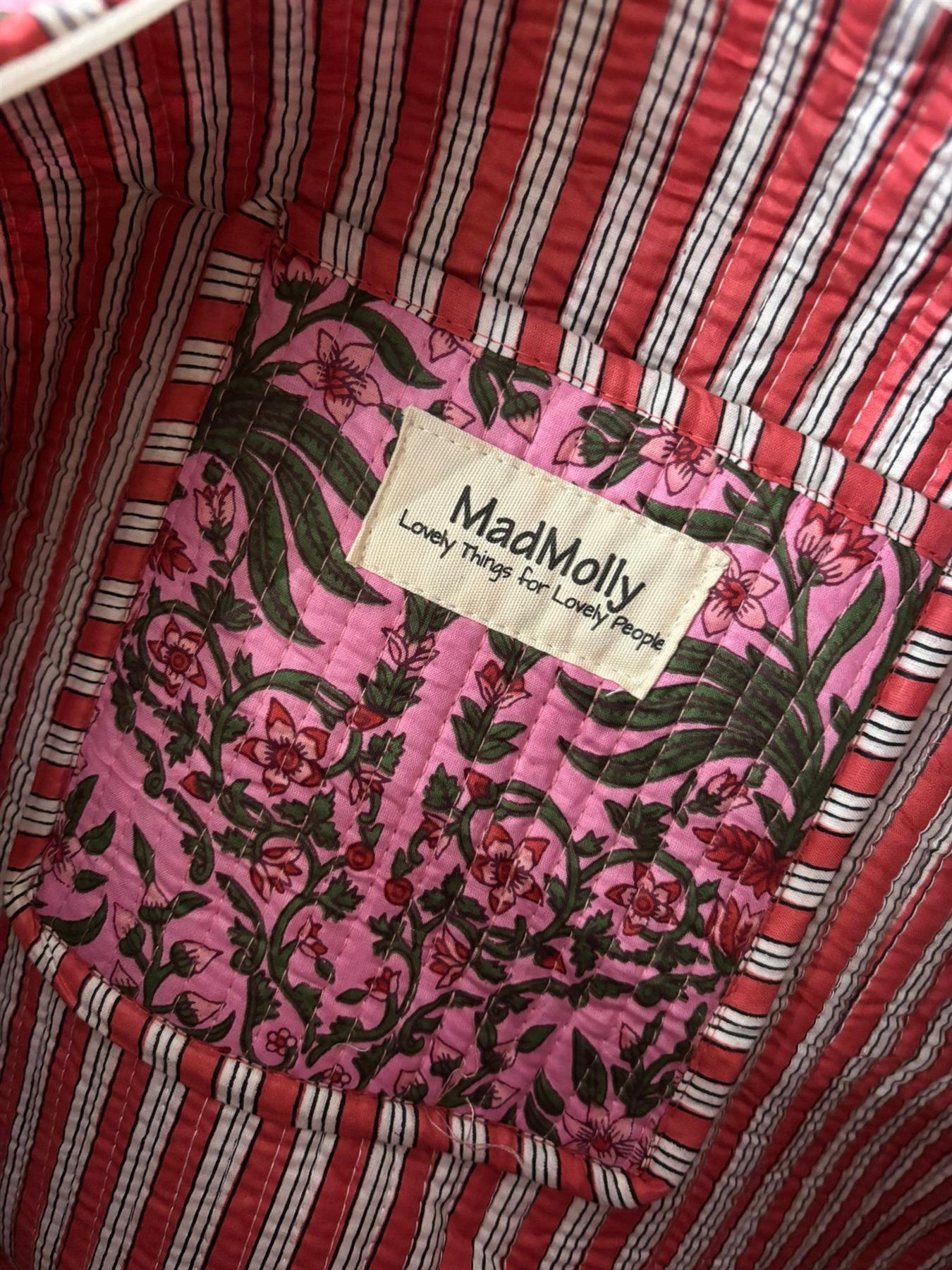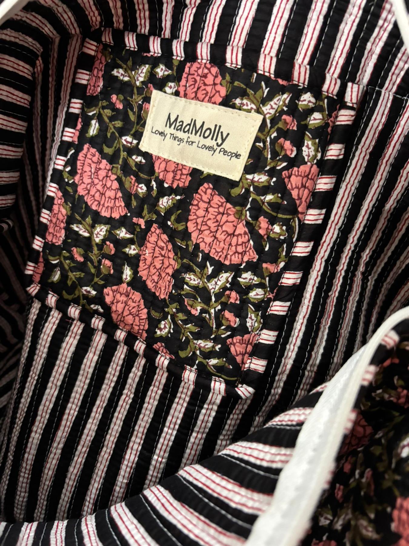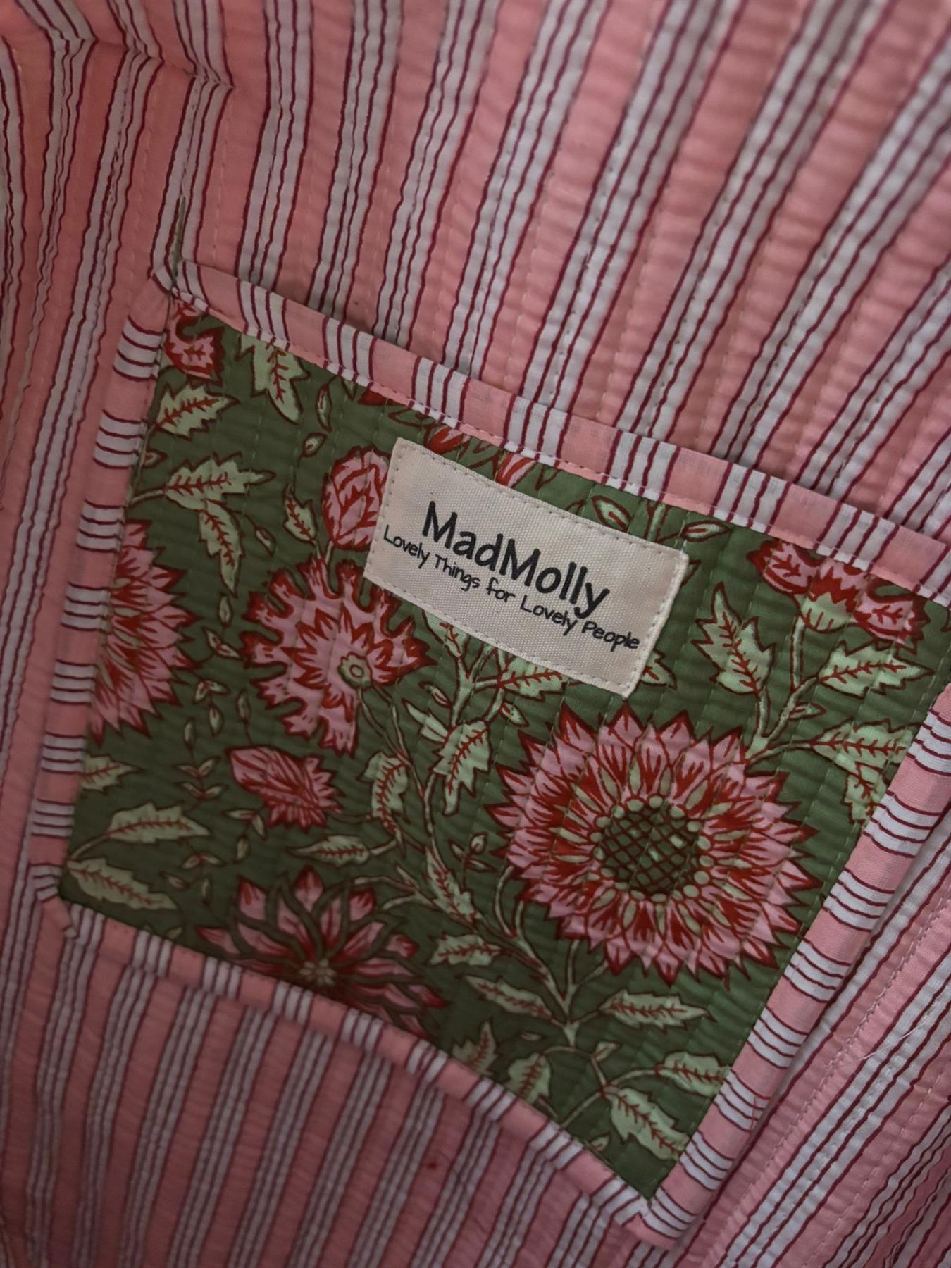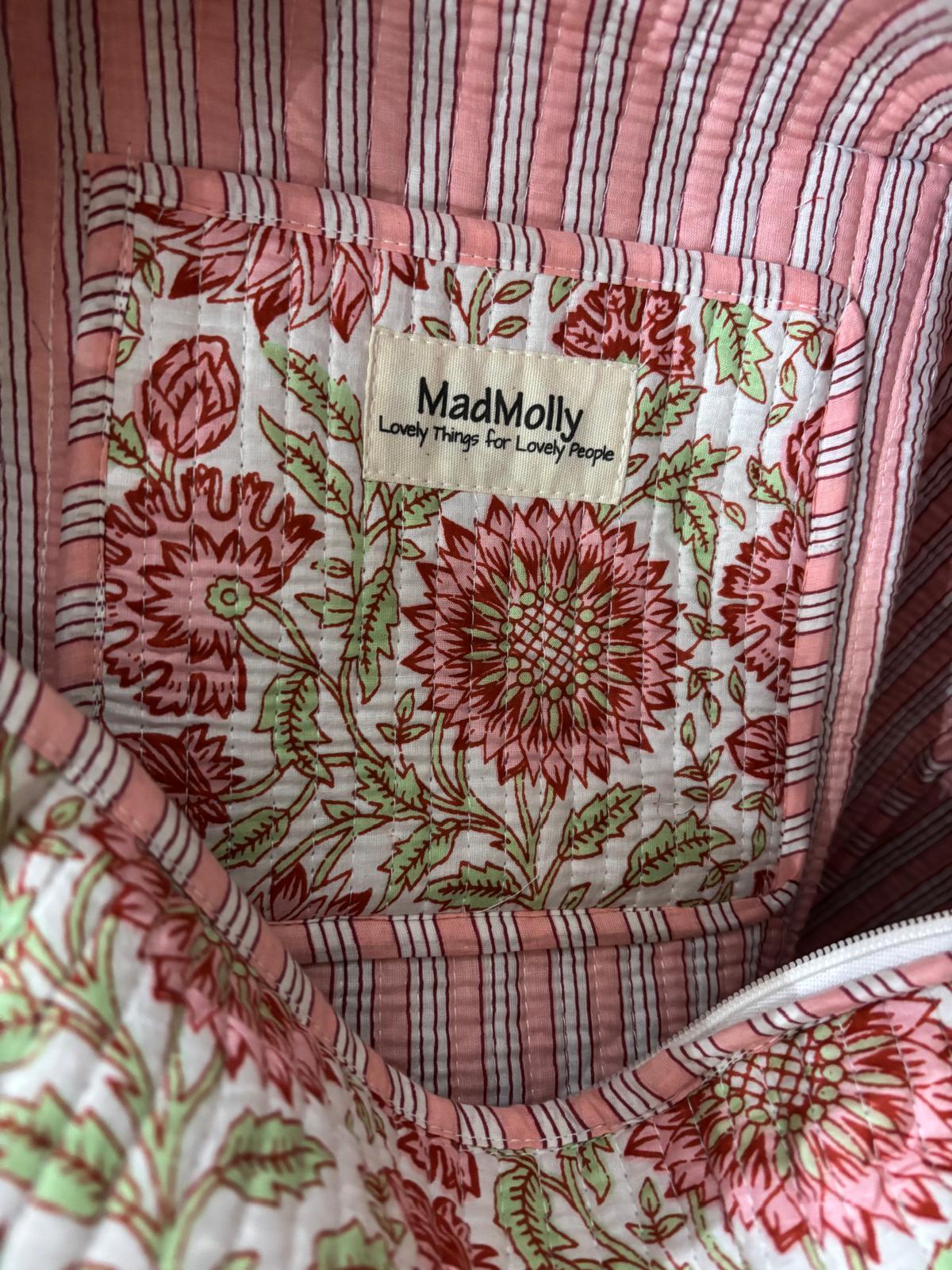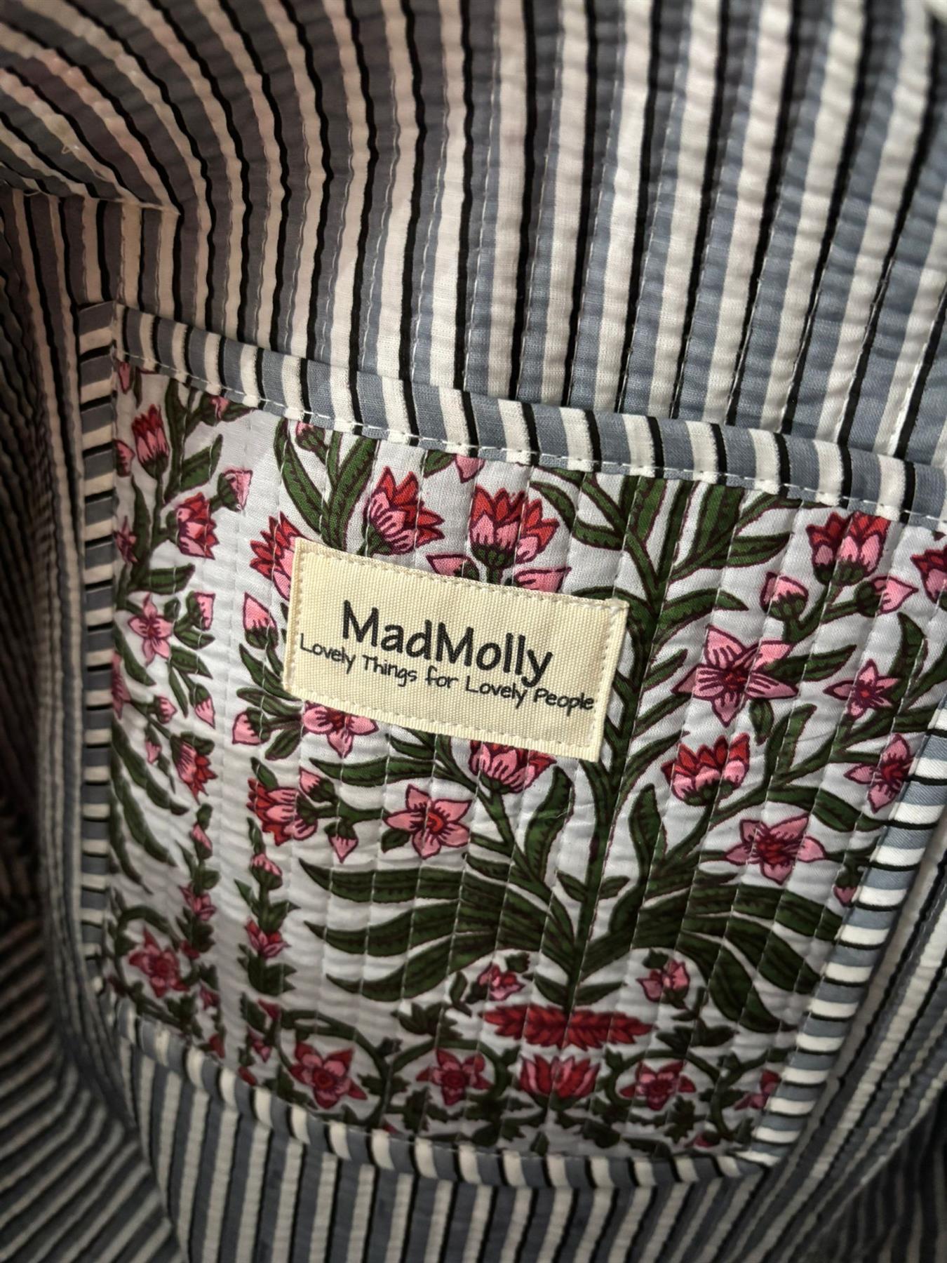 Beautiful MadMolly hand-block printed weekend barrel bags are made for us in Jaipur, India.
