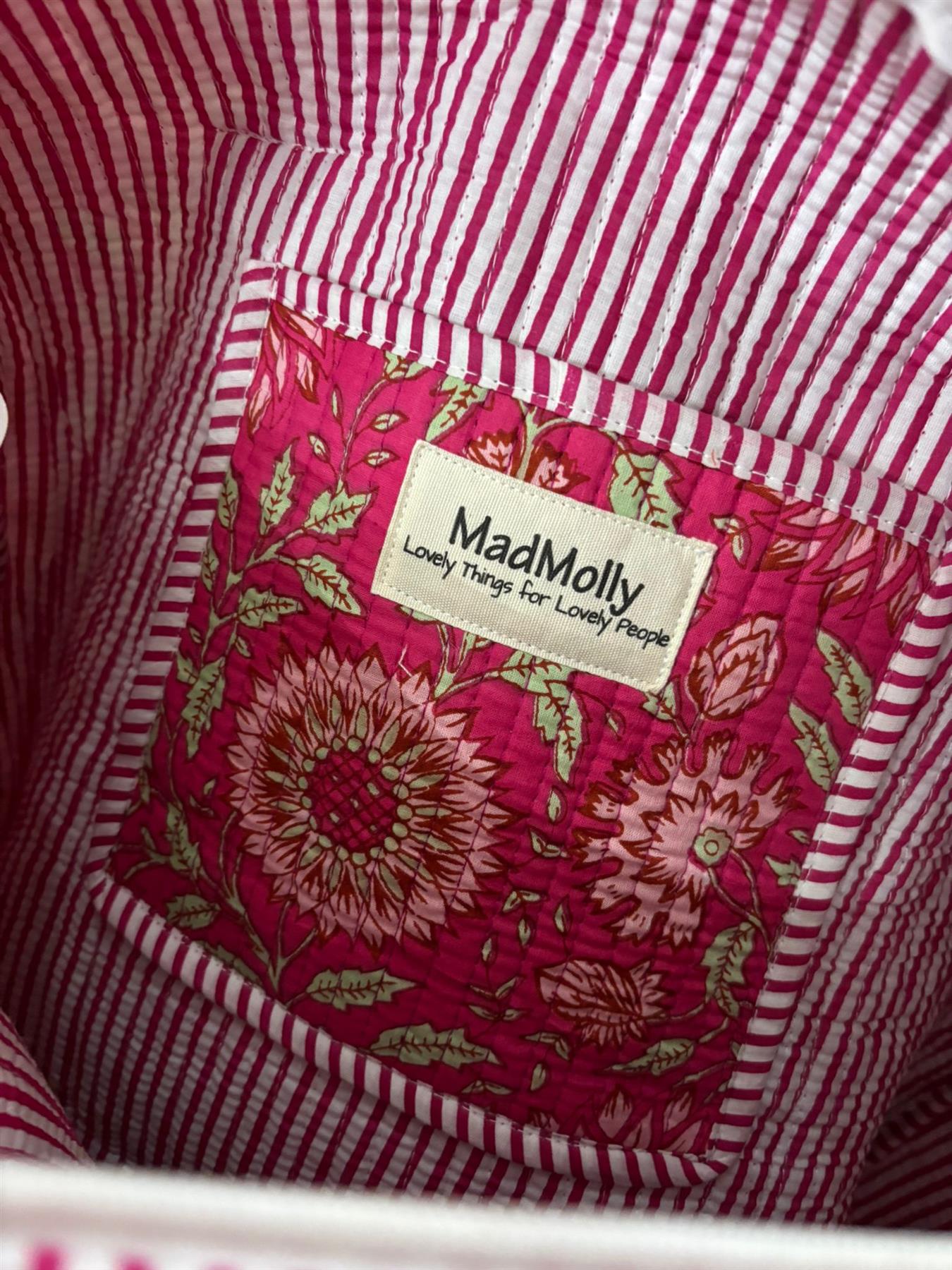 • Pocket on the outside & lined on the inside with contrasting fabric and a pocket