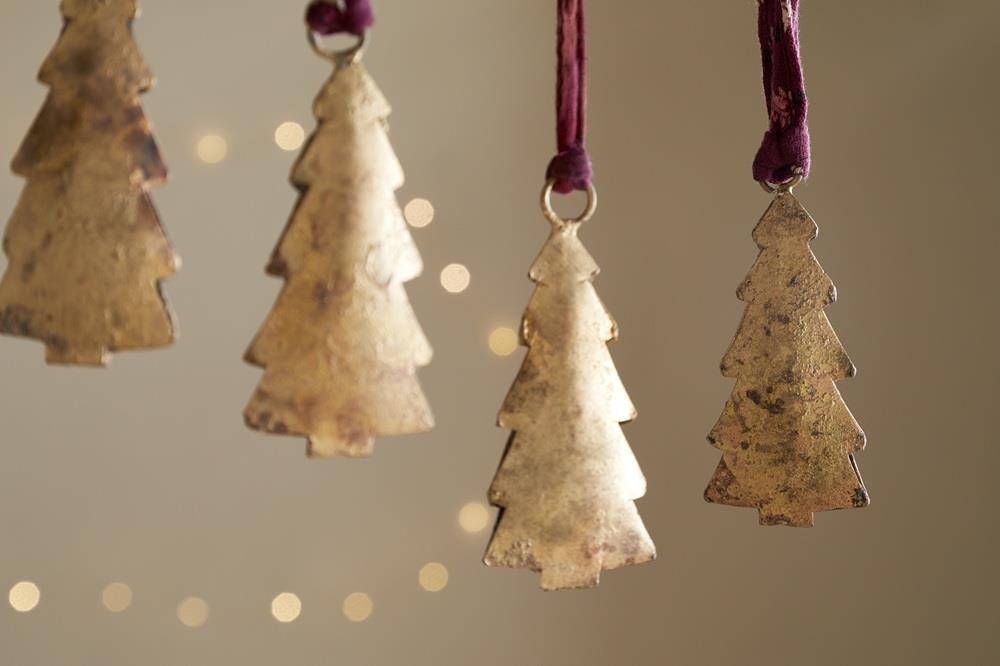 Mishti - Christmas Tree Baubles - Antique Brass - Set of 4 - MB9201 - Nkuku