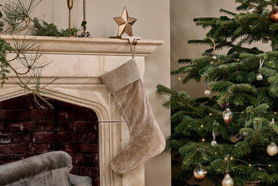 Nkuku's Karru stocking is an elegant and eco-friendly way to share your Christmas gifts. It's handcrafted from luxurious cotton velvet with a linen border, created using time-honoured methods.