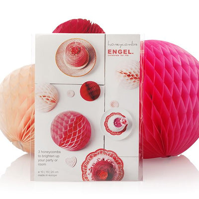Sweet - Large Colourful Honeycombs - Set of 3 (10, 15 & 20 cms) Red/Apricot/Pink - Engelpunt/Life&