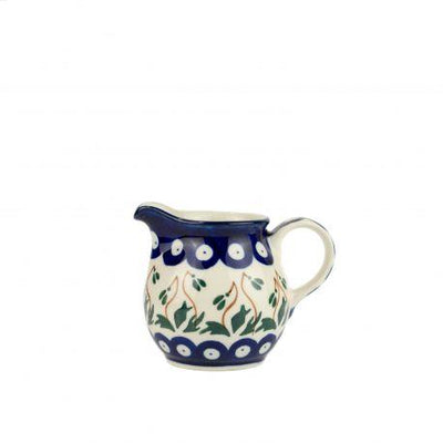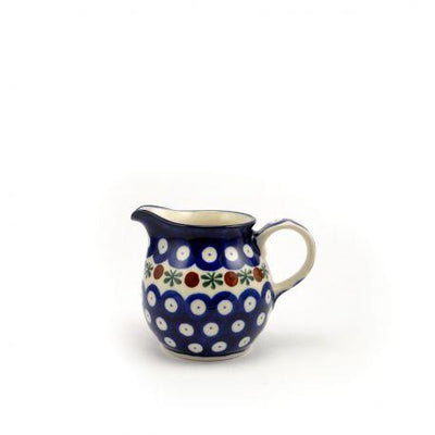 Creamer Milk Jug - Flower Tendril/Blue With Red & White Spots - 200ml 0286-0070X - Polish Pottery