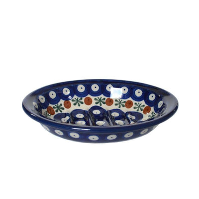 Soap Dish With Holes - Flower Tendril/Blue With Red & White Spots - 0879-0070X - Polish Pottery