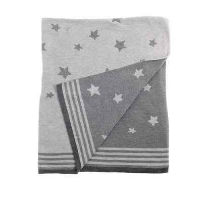 Grey & White Stars Reversible Blanket - 100% Cotton - 75 x 100cms - Ziggle