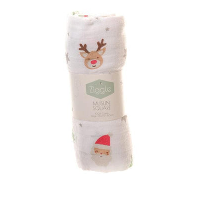 Large Single Muslin - Christmas Puddings/Trees/Rudolf/Santa - 80x80cms - Suitable From Birth - Ziggle