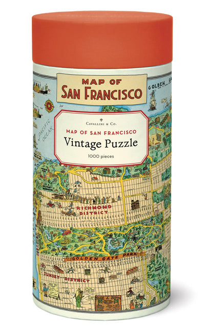Cavallini - Vintage Jigsaw Puzzle - 1000 Pieces - 55x70cms - Map of San Francisco