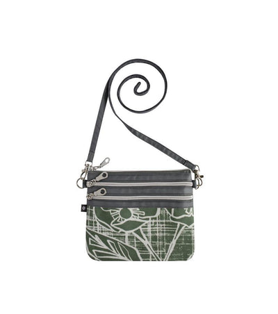 Earth Squared - 3 Zip Pouch Crossbody Bag - Oil Cloth - Oslo - Green/Flowers - 19x15cms