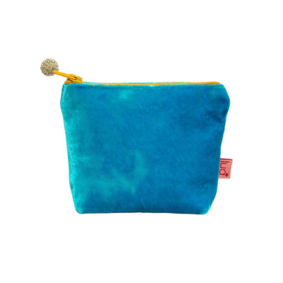 Lua - Velvet Mini Coin Purse  9 x 11cms - Aqua Blue/Orange Zip